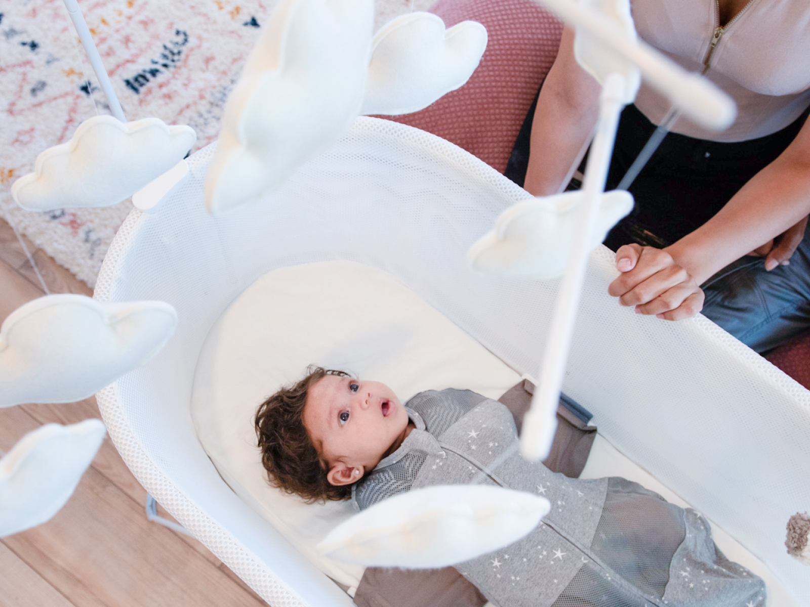 - Easily swings out of the way when you need to put baby in or lift baby out of SNOO